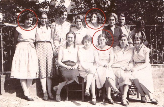 De gauche à droite: Jeanne, Lucie et Madeleine au cours Janné (~1928).