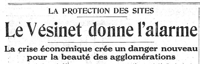 La crise économique crée un danger nouveau pour la beauté des agglomérations. Dans le complet désordre auquel a été livré jusqu'à présent le développement de la banlieue, quelques-unes des communes les plus belles sont demeurées pourtant presque intactes. Cet heureux phénomène peut étonner au premier abord. Il s'explique vraisemblablement par la beauté même de ces cités qui, au moment du grand débordement de Paris, écarte d'elles les mauvais lotisseurs attirés par les terrains de moindres prix. Pour avoir tardé dans ses effets, le danger n'a pas disparu. Il s'en faut ! Aujourd'hui, l'une de ces jolies cités — et non la moins remarquable puisqu'il s'agit du Vésinet — lance un cri d'alarme. Qu'on y prenne garde, la question dépasse en intérêt le Vésinet seul elle se pose de même façon dans toutes ces agglomérations qui sont demeurées les derniers joyaux de cette couronne délabrée dont la banlieue entoure la capitale. Le Vésinet n'est qu'un exemple, déjà fort intéressant par lui-même.