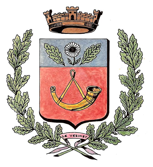 .... Les armoiries du Vésinet Les armoiries de la commune du Vésinet datent de 1898. Le principe en fut adopté par le Conseil municipal le 2 août 1897. Le Conseil avait décidé qu’y figureraient: Un cor, de forme ancienne, rappelant la légende de Roland, une marguerite, sous le vocable de laquelle M. Pallu, premier Maire du Vésinet, a placé cette Commune qu’il a fondée et une guirlande de feuillage de chêne rappelant la forêt qu’était naguère ce pays. Elles furent officialisées par arrêté du maire, Charles Drevet, du 2 août 1898.