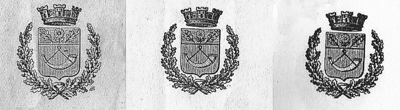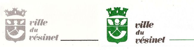En-tête de papier à lettre officiel de la mairie 1945 (imprimerie) ; 1967 (off-set) ; 1989 (photocopie) Tout à fait adaptée aux techniques d'imprimerie traditionnelle, la reproduction du blason dans sa forme bicolore devient plus hasardeuse avec l'off-set et donne un résultat généralement médiocre avec les premières méthodes de reprographie. C'est ce qui a justifié l'apparition de formes stylisées dès les années 1970, leur usage comme en-tête officielle devenant systématique durant le 5e et dernier mandat d'Alain Jonemann (1989-1995). En 1995, son successeur, Alain-Marie Foy, revint à la forme traditionnelle mais en couleur, choix justifié par les progrès des techniques de reprographie laser.