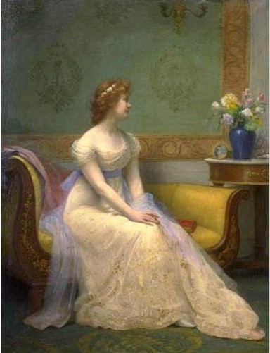 M. Arpad de Migl est un artiste étranger au talent très français qui vient, du reste, d'être décoré de la Légion d'Honneur, non seulement à titre de peintre, mais aussi pour le précieux concours qu'il a prêté aux artistes français dans différentes expositions, notamment à Vienne et à Budapest. Peintre de figures et de portraits, l'œuvre dernière de M. Arpad de Migl, qu'il destine au prochain Salon, est une idéale figure de jeune fille dont la chevelure blonde et les épaules sont en partie voilées par un nuage de mousseline blanche et rose ; elle tient sur ses genoux une gerbe de fleurs. Il y a dans ce tableau une grande fraîcheur de coloris et une remarquable souplesse d'exécution en même temps qu'une belle qualité de matière. Comme je complimentais l'artiste à ce sujet : «Je n'ai qu'un faible mérite à cela » répliqua M. Arpad de Migl, « car c'est à M. Tony Robert-Fleury que je dois le secret et je l'emploie depuis plusieurs années. Il s'agit simplement de l'usage de certaines huiles, et dans l'adjonction de quelques ingrédients dans les couleurs. Un des premiers soins de l'artiste doit être cette recherche, ce souci de la matière qu'avaient les anciens et qui assure aux tableaux toutes les chances de conservation. » J'ai revu, en effet, chez cet artiste un tableau qu'il avait exposé il y a une douzaine d'années. Il représente une jeune femme en robe de tulle blanc Empire, décolletée, avec écharpe mauve, assise dans un salon Directoire près d'une table couverte de fleurs, et je l'ai trouvé d'une fraîcheur et d'une actualité telles qu'il semblait fait d'hier. M. Arpad de Migl commence un grand portrait de deux jeunes garçons, mais il ne pense pas pouvoir le finir pour le Salon.