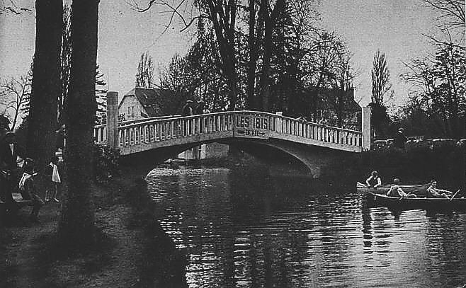 Les Ibis, le nouveau pont pour les automobiles. En 76 ans... C'est en 1856 que le bois du Vésinet a été cédé par l'Etat à une société privée, dont le directeur, M. Pallu, entreprit de fonder une ville de plaisance. Tant d'activité fut déployée que la transformation du Vésinet fut rapide. On sut y attirer tout ce qui pouvait concourir à sa prospérité et rehausser la beauté du pays. Le comte de Choulot et l'architecte paysagiste Olive travaillèrent à cette œuvre originale qui porte si bien la marque du second Empire. Partout, dans ces travaux de transformation, dans la disposition générale et dans ses parties : avenues, rues, lacs, rivières, cascades, on trouve la main de l'artiste et le goût du jour. Des percées, pratiquées dans de larges proportions, et qui ne seront jamais replantées, font pénétrer l'air et la lumière, augmentent la salubrité, assurent à tous les terrains la jouissance perpétuelle des charmants paysages qui les entourent. Les voies de communication elles-mêmes ont été calculées de manière à faire naître à chaque instant, sous les pas des promeneurs, des scènes toujours nouvelles.