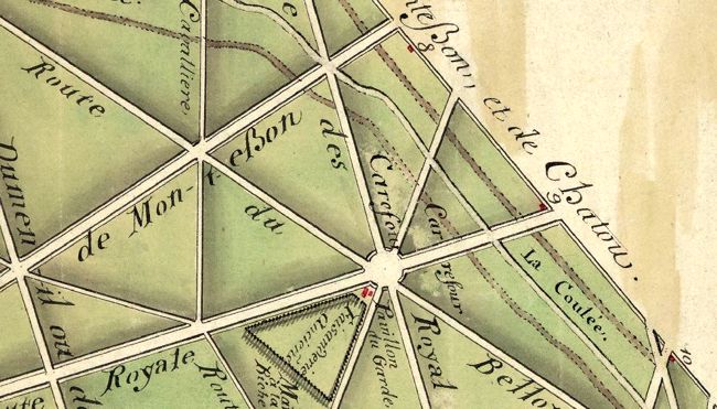 intégralement. Borne forestière portant les armes du roi Henri IV, découverte dans la propriété de M. Derumaux, avenue Horace Vernet (1972). Un mesurage complémentaire est