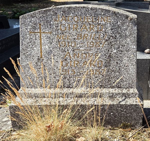 Sépulture de Jacqueline et André Girard au Vésinet. “André Girard, une figure importante de la musique française du XXe siècle” Cliché SHV, 2024. **** Notes et sources : [1] Le Peuple de la Brie (Organe d'action républicaine et sociale) Meaux, 15 octobre 1936. [2] Maxime André Raymond (dit Max) Chouillier, né le 10 août 1909 à Paris (17e) est un pianiste et compositeur français. Marié à Jacqueline Brilli en 1933, divorcé en 1937, remarié à Francine Sors en 1938. Il est mort à Avignon en 1973. La ville de Carrières-sur-Seine lui a dédié un square. [3] Extrait d'un fragment de programme, coll. J. Colgevit. [4] Mobilisé en 1940, sergent au 127e Régiment d'Infanterie, il est fait prisonnier et détenu au Stalag IIa, Holenstein, Pologne (Liste officielle des prisonniers de guerre français, Paris, 14 mars 1941.) [5] France Thérèse Paule Girard est née à Paris (9e) le 14 décembre 1946. Comédienne, on l'a vue au cinéma dans Que la bête meure (1969), La Femme en bleu (1972) et à la télévision dans Les Complices (1971), Les Jardins du roi (1974), La chaine (1979)... Au Théâtre, comédienne et metteur en scène, elle fut directrice du Théâtre des Sablons à Fontainebleau. Elle est décédée le 4 mai 2010 à Quincy-sous-Sénart (Essonne). [6] Le Berry républicain (Bourges) 13 novembre 1947. [7] « Personnalité faite d'intelligence et de sensibilité. Technique limpide, archet très sur. violoniste de premier ordre (Jean Athos à Alexandrie). Talent exceptionnel (J. Chryssikes à Athènes). Une violoniste à la sonorité chaude, expressive, fine et profondément musicale (R. Massari à Rio de Janeiro). Tous les auditeurs garderont gravé dans leur mémoire la pureté de son du violon de Jacqueline Brilli, la vivacité de son coup d'archet et la sureté d'une technique parfaite (Segretin à Juiz de Fora, Brésil). Florilège de critiques internationales élogieuses citées dans le Berry Républicain à l'occasion de la participation de J. Brilli au 98e concert de l'École de Musique de St-Amand (Cher). Le Berry républicain (Bourges) 1er décembre 1949. [8] Patricia Gauci-Clédat, communication personnelle.
