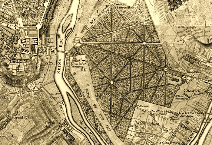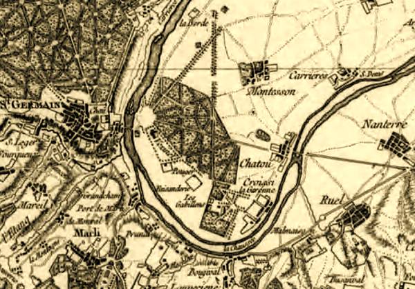 Ce changement ne sous-entend pas une différence intrinsèque de la qualité, c'est l'objectif qui est attribué à la carte lors de sa fabrication qui fait varier sa nature. On s'intéressera ici plus particulièrement aux villages des alentours, au tracé plus précis des allées forestières, aux coupes et bâtiments représentés dans le voisinage du domaine du Vésinet, du bois ou de la Forêt du même nom.