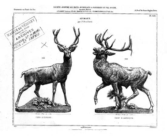 pendules, grilles … D'où vint la fortune du Val d'Osne. [2] Revue Artistique et littéraire (1864) tome VII, 15 septembre 1864, p. 130-134. [3] Technique qu'un élève de Rouillard, Rodin, poussera dans ses retranchements… [4] Indication fournie par un conférencier du Musée international de la chasse de Gien qui pense qu'il peut s'agir d'un cerf d'Europe centrale, plutôt que d'un élaphe, la mauvaise proportion de l'encolure est la conséquence du marcottage. [5] Dictionnaire Véron ou Mémorial de l'art et des artistes de mon temps. [6] Bernard-Yves Cochain, Pierre Louis Rouillard (1820-1881) Sculpteur animalier, Professeur de sculpture et d'anatomie, DEA de l'Ecole du Louvre, Paris, 1997. [7] Vente aux enchères à Versailles, avril 2012; adjugé à 81 787 € (frais inclus). Source : Robert Labille, niddanslaverdure, mai 2012.
