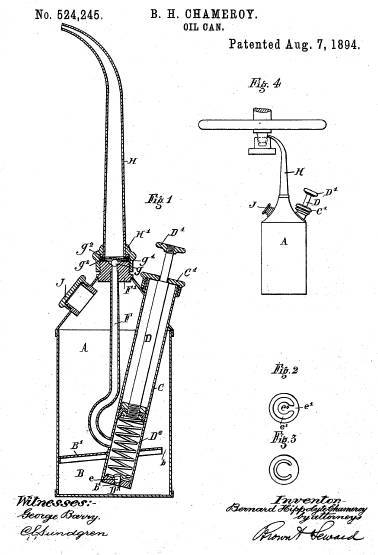Lorsque treize ans plus tard, Hippolyte Chameroy dépose sa demande de brevet pour une burette de graissage (13 mars 1893), il semble encore lié à la Société Chameroy, puisque la demande de brevet est domiciliée au 196, rue d'Allemagne, son Siège. Mais les extensions pour ce brevet et tous les autres qui suivront seront domiciliés au Vésinet, et Bernard Hippolyte Chameroy se fera assister par un bureau d'ingénieurs-conseils en matière de propriété industrielle (la Société Assi & Genès à Paris, rue du Havre, n° 6).