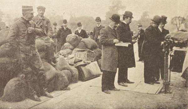 "La Ville de Paris vient de faire installer dans chacune des vingt mairies un bureau de pesage public muni d'une bascule imprimante où chacun peut demander le contrôle du poids d'une marchandise achetée, d'un colis à expédier, etc.; moyennant une faible redevance, l'employé délivra au public un ticket portant le poids obtenu imprimé par la bascule. Ce mode de pesage donne une sécurité entière contre toute erreur; le ticket, poinçonné, est un contrôle certain et indiscutable qui évite toute contestation sur le poids de l'objet. Nos lecteurs parisiens ont certainement déjà remarqué trois de ces bureaux placés sur la voie publique: l'un, rue de Lafayette; un autre, quai de Conti; le troisième, rue de la Bienfaisance; ils possèdent chacun un pont-bascule de la force de 10.000 kilogrammes, pour servir au pesage des voitures. Ces appareils, comme les petites bascules des mairies, donnent le poids imprimé.