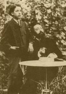 Pierre Hippolyte Chaminade (1826-1887) et son fils Henri (1855-1933) dans le jardin du Vésinet vers 1869 L'heureux propriétaire peut enfin procéder à la construction de la villa de ses rêves. Pourtant, le bonheur de M. Chaminade n'est pas complet. Comment, en effet, s'empêcher de regarder avec envie ce petit n°71 bis, cette toute petite parcelle de terrain en triangle, à l'angle de la route de Ceinture et de l'allée du Lac Inférieur, qui compléterait si admirablement bien son domaine... Helàs sur ce terrain, il y a une maison de garde qui appartient à M. Pallu lui-même et à laquelle celui-ci semble tenir. Mais à tout problème, il y a, paraît-il, une solution. Le 17 décembre 1865, M. Chaminade a résolu son problème : il a réussi à convaincre M. Pallu de lui vendre, pour 4400 francs, son petit triangle et accessoirement — pourquoi pas? — le terrain n°103 (2). Comment ? Eh bien, c'est simple M. Chaminade fera démolir la maison de garde et en fera construire une autre, en tous points semblable et en état d'être habitée, dans un délai de six mois!