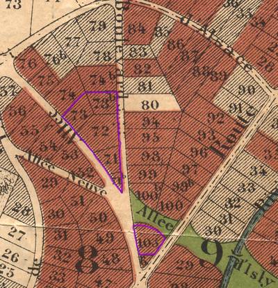 Le 22 mai, M. Chaminade est lui-même présent à une autre séance d'adjudication lors de laquelle il rafle le terrain n°73 bis (1364m²) pour 1500 francs. Mais, entre le n°72 et le n°73 bis, il y a ... le n°73! Qui lui a échappé en avril précédent. Qu'à cela ne tienne! en septembre, moyennant une somme de 2000 francs, M. Chaminade rachète à M. Valentin, un futur voisin de la rue de Provence, ce terrain qui avait été adjugé à 1200 francs. Ou bien ce M. Valentin est lui aussi un homme d'affaires avisé — il vient de réaliser un profit de 66 % en cinq moi! —, ou bien M. Chaminade tient vraiment à posséder ce terrain!