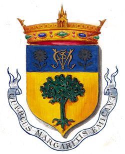 A côté des armoiries officièles du Vésinet, le projet d'armoiries pour la Paroisse Ste Marguerite et sa devise : Quercus marguaritis emicant (Alfred Couverchel, 1866) Il est vrai que, dès 1517, le récit de voyage d'un ecclésiastique allemand [1] mentionnait un petit bois qui ne s'est jamais développé et s'appelle encore aujourd'hui le bois de la Trahison, une forêt de chênes « mal-venans » (de petite taille et de conformation irrégulière) résultant de pousses spontanées plutôt que d'une forêt plantée. Si l'on se réfère aux documents historiques, plans de boisement, entretien, Comptes des bâtiments du Roi, documents comptables, on trouve trace de plantations massives d'ormes et, en moindre proportion, d'érables, de tilleuls et de châtaigniers, mais de chênes ... point. Les « chênes géants de la forêt du Vésinet, appelée alors la forêt d'Echauffour » qui surgissent dans la littérature du XIXe siècle ne sont que la représentation romantique de la forêt imaginaire d'autrefois : Source cristalline, chênes géants, biche et faon à l'allure incertaine et légère ... La description de la forêt du Vésinet au moment de son acquisition par la Société Pallu en 1856 est à ce titre intéressante. En voici la synthèse [2]: ... On peut la rapprocher des rapports des gestionnaires des Forêts de la Couronne et du plan de 1824 qui offrent une vision des bois trente ans plus tôt. On y lit la poursuite de la composition que nous avons vue s'élaborer au fil des siècles : une très vaste partie boisée, coupée par des routes et ronds points et une surface de taille assez importante (12 ha), l'ancien champ de manoeuvres " entièrement déboisé. "
