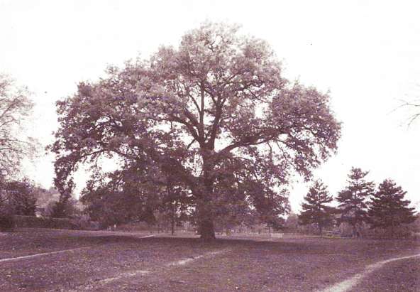 ... les chênes moroses envahis par la bruyère ... Avec les cartes postales anciennes, la période de couverture photographique réalisée vers 1900-1920, donc quelque 50 années après la réalisation initiale, fait apparaître les paysages au début de la maturation des principales plantations nouvelles, où les effets voulus sont donc déjà perceptibles. A contrario, elle fait aussi apparaître [images ci-dessus], dans les secteurs non exploités ou pas entretenus (quartier des Charmettes bois de l'Asile) un retour à la forêt d'avant les premiers défrichements de la Compagnie Pallu. Chênes " historiques" (antérieurs à la création du Vésinet) Sinuosité du tronc, nœuds vicieux, troncs fourchus, multiples, jugés médiocres du point de vue sylvicole mais ô combien pittoresques ... malgré des houpiers déséquilibrés par la coupe de branches charpentières. Les règlements et plans de sauvegarde Si l'on s'accorde à considérer que le Vésinet a pu conserver son charme, son caractère pittoresque et son statut de ville-parc grâce aux règlements qui l'ont protégé dès son origine, il faut remarquer que rien ne figure dans les Cahiers des Charges de 1858 et 1863 pour conférer la moindre protection aux plantations. Pas davantage lorsque l'Acte d'Abandonnement, en 1876, fait passer les " espaces verts" dans le domaine du droit public. On peut penser qu'alors, les arbres et particulièrement les chênes paraissaient si nombreux qu'il n'y avait pas de dommage à en abattre quelques-uns. En 1937, dans le prolongement des mesures de Classement du Site, un Plan d'Aménagement, d'Embellissement et d'Extension est mis en place et déclaré d'Utilité publique. Là encore, son Règlement des Servitudes, très rigoureux en matière de construction, ne fait aucunement mention des arbres en général, des chênes en particulier. Il faudra attendre le règlement d'Urbanisme de 1970 pour qu'on se préoccupe enfin des arbres de grand développement. ...La suppression d'arbres dans les bois et parcs de moins de 4 hectares et l'enlèvement des arbres d'alignement qui risqueraient de modifier le caractère des paysages, tels que les abattages d'arbres le long des voies publiques ou privées ne peuvent être réalisés qu'après le dépôt en mairie d'une déclaration indiquant les travaux projetés, qui sera instruite dans les conditions prévues par l'article 3 du décret n° 59-1059 du 7 septembre 1959. ...Au dossier de demande de permis de construire seront jointes les indications relatives aux arbres de haute tige à abattre et aux plantations à réaliser. Dans le cas où la construction des bâtiments entraînerait l'abattage d'arbres de haute tige, le propriétaire du terrain devra replanter un arbre de haute tige pour remplacer chaque arbre abattu. Dans le sous-secteur d'habitations basses avec jardins il sera exigé de maintenir ou de créer des plantations à raison de 30 arbres de haute tige minimum à l'hectare. ...Dans le sous-secteur résidentiel d'habitations individuelles il sera exigé de maintenir ou de créer des plantations à raison de 100 arbres de haute tige minimum à l'hectare." Enfin, dans le règlement du Plan d'occupation des Sols (POS) de 1979, de nouvelles prescriptions apparaissent : ...Des surfaces sont obligatoirement réservées aux espaces verts leur emprise est de 20% au moins de la propriété bâtie en secteur UAa et 35 % au moins de la propriété bâtie en secteur UAb, 50% dans le secteur UE, 60% en secteur UH .... ...Il est exigé un arbre de haute tige par 100 m² de terrain libre au minimum. Tout abattage d'arbre est soumis à l'autorisation du Maire. Le Chêne dans la microtoponymie locale Les habitants, de leur côté, ont toujours été sensibles à la présence des chênes et pour ne pas se limiter à la rue des Chênes tracée avec le Hameau du Petit-Montesson dès les années 1860, et la Villa Beau-Chêne édifiée en 1891 par l'architecte Louis Gilbert et connue de nos jours pour avoir été la demeure de Joséphine Baker, les noms de maisons faisant référence aux chênes sont nombreux. Pas moins de sept maisons ou villas de caractère ou de style très différents ont été nommées Les Chênes ou Villa des Chênes, deux autres Les Trois Chênes. Il faut y ajouter Les Vieux-Chênes, La Chesneraie, Le Grand-Chêne, La Rouvraie, Les Rouvres, donnant à l'essence chère à Saint-Louis, le premier rang dans la toponymie locale. Considéré longtemps comme le plus vieux chêne du Vésinet, datant de la fin du XVIIe siècle, il était contemporain des chasses du Roi-Soleil. Abattu par la tempête de 1999 sur la Grande Pelouse. Cliché 1986. L'approche scientifique Une importante étude dite " historique et paysagère" fut rendue publique en 1995. Cette étude faisait suite au Contrat Départemental d'Environnement établi en 1991 entre le département des Yvelines et la commune du Vésinet [2]. Il portait d'une part sur l'établissement par un ingénieur-écologue d'un diagnostic sanitaire du patrimoine arboré de la commune et d'autre part sur la réalisation par un paysagiste d'une étude paysagère de l'ensemble du territoire communal, tant public que privé. En 1994, les Contrats d'Environnement ont été recentrés sur la protection du patrimoine naturel et des paysages. Entre les premiers défrichements en 1857 et l'arbre du centenaire planté en 1975, aucun plan global de replantation de chêne n'avait été appliqué. Il n'y avait donc alors pour ainsi dire aucun jeune chêne hormis ceux –rares– qui avaient pu pousser spontanément. Chêne du Centenaire de la commune du Vésinet Planté le 4 mars 1975, don de Mlle Rudolphe, fille du champion cycliste, il fut inauguré le 22 juin 1975 [6] C'est aujourd'hui un chêne cinquantenaire. L'effet des catastrophes naturelles Les grands arbres de notre ville-parc ont aussi souffert d'épisodes climatiques violents. Ceux de 1780 (ouragan), de 1870 (ouragan), de 1896 (ouragan ou cyclone) et de