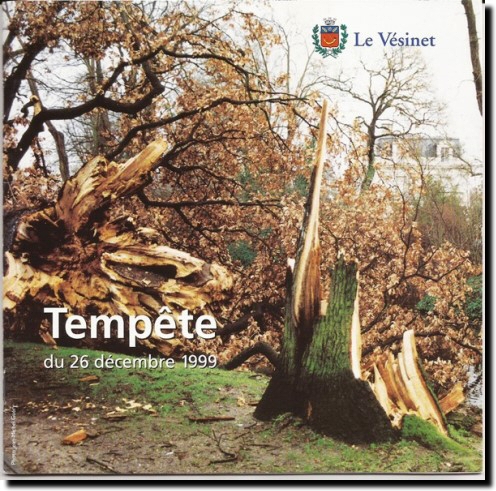 Tempête Brochure de 20 pages (35 illustrations) publiée par la Ville du Vésinet aux lendemains de la tempête du 26 décembre 1999. ... Adieu vieilles forêts, adieu têtes sacrées... Adieu chênes, couronnes aux vaillants citoyens ... Au cours des trente dernières années, avec le développement de l'Ecologie (discipline scientifique entrée tardivement à l'Université française) et les nombreuses connaissances qu'elle a permis d'acquérir – connaissances encore très parcellaires –- la façon de concevoir et de traiter les interactions entre insectes et végétaux a beaucoup évolué. Le rôle écologique des espèces considérées comme nuisibles se fait jour, le respect de la biodiversité oblige à renoncer à l'élimination quasi systématique par voie chimique de certaines d'entre elles au point que désormais, pour ne retenir que le cas du Capricorne, le chêne ne doit plus être considéré comme la victime de l'insecte mais comme le biotope au cœur duquel l'insecte (espèce protégée) passe une grande partie de sa vie, et que l'on doit à ce titre le conserver en l'état. [7]