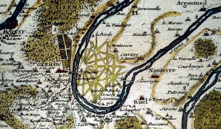 En observant la carte du XVIIIe siècle ci-dessus et la façon très particulière dont le territoire du Vésinet est représenté – représentation très habituelle sur les cartes topographiques de cette époque comme on peut le voir sur la page dédiée –, on doit se souvenir qu'avant son rôle cynégétique, la Garenne du Vésinet contenant 1009 arpents 20 perches, sera conservée pour l'ornement du château de Saint-Germain. [État de 1674, E 3627, fol. 16v.] Les plantations en alignement, en 1664 et après, avaient d'abord pour but de dessiner des perspectives, un lieu où les alignements ont plus d'importance que ce qui pousse dans les espaces ainsi délimités. Dans ces espaces, le Chêne, essence endémique du lieu, continue de pousser spontanément. La main du Paysagiste puis de l'Urbaniste C'est donc une végétation sans vertu, paresseuse et languissante, où les arbres sont rachitiques et rabougris, les chênes moroses envahis par la bruyère et dont les arbrisseaux obstruent tout horizon qu'Alphonse Pallu confie en 1857 au Comte de Choulot pour y réaliser un des parcs dont il a le secret. La presse ne cache pas son scepticisme. Le bois est connu comme ... à peine vivifié par les précipitations et lors des saisons pluvieuses, des mares se forment, génératrices de moustiques. Et, toujours selon les témoignages du XIXe siècle, si la cognée de l'Etat éclaircit de temps à autre les massifs de chênes et de trembles, les chemins y sont fort mal entretenus. En principe, on exploite 20 hectares par an. La révolution (périodicité) est de 20 ans. La forêt est décrite comme taillis sous futaies de chênes épars, de charmes et de bouleaux avec des pins sylvestres par bouquets.