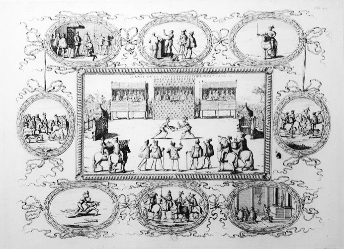 Le duel judiciaire à St Germain en Laye, le 10 juillet 1547 Gravure du XIXe siècle, archives St-Germain-en-Laye. Le coup de Jarnac désigna alors un coup habile et loyal. C'est ce qu'on lit dans le dictionnaire de Furetière (1690). Cette signification devait durer plus de deux siècles jusqu'à ce que le dictionnaire de Trévoux (1771), œuvre des jésuites, vînt infléchir la définition en donnant un caractère malfaisant au dit coup. Guy de Chabot était un protestant. Ceci explique peut-être cela. Bref, l'expression prit progressivement un sens péjoratif. Le Grand Littré parle de « manœuvre perfide, déloyale » et renvoie à Saint-Simon. Dans une édition récente, le Petit Robert a beau définir aujourd'hui le coup de Jarnac comme un coup « inattendu mais loyal », la vox populi continue d'y voir un coup tordu. En 1547, sur cet emplacement dit du Boulingrin se déroula devant toute la cour et le roi Henri II le fameux duel «judiciaire » entre Guy Chabot de Saint Gelais, baron de Jarnac et beau-frère de la favorite du roi François 1er – la duchesse d’Etampes – et François de Vivonne, seigneur de La Châtaigneraie, ami de celui qui était encore le Dauphin. L’issue fut fatale à ce dernier, dont le jarret fut tranché par son adversaire et donna naissance au « coup de Jarnac », désormais synonyme de « coup bas ». Par la suite, chaque dimanche après-midi, entre 1670 et 1680, se déroulèrent aussi en ce lieu les Promenades philosophiques de Bossuet, alors précepteur du Dauphin. Des ecclésiastiques, dont le jeune Fénelon, mais aussi quelques laïcs y commentaient et discutaient des versets de la Bible. Situé au Sud du Château-Neuf et créé également par Le Nôtre dans les années 1660, il servit tout d’abord de terrain de jeu de boules et se transforma peu à peu en jardin d’agrément planté de gazon, de bosquets, de parterres, d’allées sablées et ombragées agrémentées de bancs. Dans une gravure de 1716, on observe un parterre bordé de buis, des plates-bandes plantées de 54 ifs et de fleurs, des allées de gazon ratissé, des charmilles taillées et des ormes à élaguer pour la salle du bosquet. En 1713, Lalande, jardinier du Boulingrin, planta un verger fermé de murs jouxtant le dit bosquet. Celui-ci comprenait des espaliers de pêchers et de poiriers - 355 fruitiers en buisson et de plein vent - des plates-bandes labourées, des allées ratissées, des carrés labourés. Au bas de la terrasse du Boulingrin, un autre verger était composé d’espaliers adossés au mur du Levant, garni de pêchers nains ou en tiges. Sous Louis XV, le Boulingrin disparut entièrement. Il fut loti, en 1764, à la suite de la création du « nouveau chemin du roi », actuelle avenue Gambetta, afin de faciliter le passage des équipages depuis la ville jusqu’à la forêt. [3]
