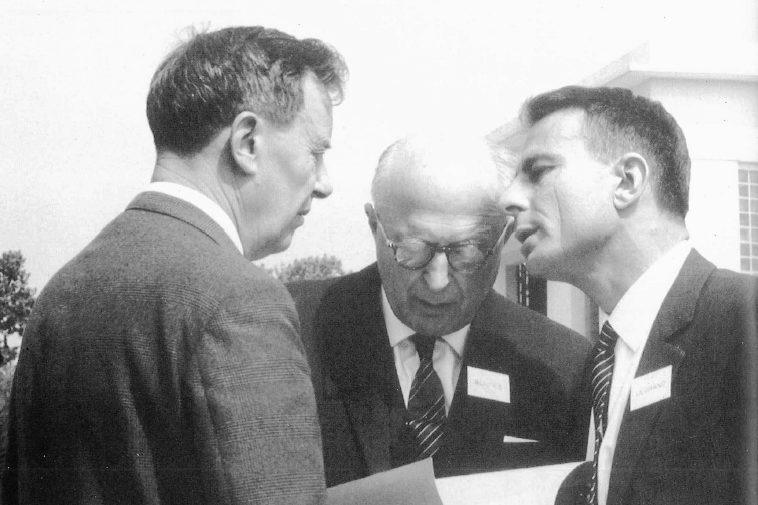 MM. Legrand (directeur général), Bonfils (PDG SLEE) et Massoulié (directeur régional) **** Notes complémentaires : [1] La Société Lyonnaise des Eaux et de l'Eclairage, qui avait absorbé en 1924 la Société des Eaux et Terrains du Vésinet fondée par Pallu, était alors concessionnaire de la distribution de l'eau au Vésinet. Des plaintes récurrentes des habitants contre la dureté et le "goût" de l'eau du robinet avaient amené la Ville à interroger le directeur de la Lyonnaise, un ingénieur spécialiste de l'épuration de l'eau, Georges Massoulié, de présenter les nouvelles installations en cours de développement sur le site "historique" de Croissy. [2] Les dernières canalisations de cette époque ont subsisté jusqu'en 2015. [3] Georges Massoulié a présenté un travail du même sujet au Congrès de l'Association Générale des Hygiénistes et Techniciens Municipaux (AGHTM, aujourd'hui ASTEE) à Paris en 1966, publié ensuite dans la revue Techniques et Sciences Municipales, A61, n°11, 1966. On y trouve de nombreux détails plus techniques sur la réalimentation de la nappe de Croissy. [4] Société Parramantois. - En 1902, le verrier Numa Parra installa son usine sur ce site de Croissy pour y fabriquer des verres spéciaux pour les instruments comportant une partie optique : appareils photographiques, caméras, jumelles, télémètres, microscopes, instruments de géodésie. Le verre était produit à partir du sable exploité localement. En 1963, SOVCOR Electronique,qui fabrique des composants électroniques (condensateurs verre, bâtonnets, résistances, paillettes de verre pour tubes cathodiques, lui succède. Elle n'expoite plus de sablière. Absorbée par des firmes américaines Corning d’abord, puis Vishay, SOVCOR fermera ses portes au début des années 1990 et les bâtiments centenaires seront détruits en 1996. [5] Longtemps considérée comme novatrices et très efficaces, ces méthodes ont connu leurs limites avec la montée en puissance de nouvelles sources de pollution chimiques, pesticides, médicaments, perturbateurs endocriniens, etc. [6] Cet article précédait une augmentation sensible des tarifs motivée par ces investissements importants. Les prix locaux étaient alors sensiblement inférieurs aux tarifs général du mètre cube dans la Région parisienne.