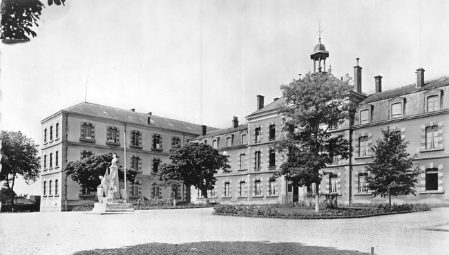 Le Château de la Boissière et, au fond, l'orphelinat Hériot Dessin de M. Gérardin pour le Journal Illustré C’est ainsi que, le 4 novembre 1886, entre le général Boulanger, ministre de la Guerre et Monsieur Hériot Chef de Bataillon d’infanterie en retraite il a été convenu ce qui suit : « Monsieur Hériot s’engage d’ores et déjà, tant pour lui que pour ses ayants droits ou héritiers, à faire don, en toute propriété, au Département de la Guerre, d’un vaste établissement qu’il fera construire entièrement à ses frais, sur une partie de son domaine de La Boissière, d’une contenance de 9 hectares 60 ares. » ...« L’Établissement dont il s’agit sera destiné à un orphelinat exclusivement réservé a des Enfants de Troupe de l’armée de Terre. Il sera construit pour en recevoir 160 au moins. Monsieur Hériot se réserve le droit, pendant la durée de sa vie de disposer dans l’Établissement de 10 places qu’il pourra accorder à des enfants de son choix. Le 10 février 1887, sous le commandement du Capitaine Magnien, ses portes ouvrent pour accueillir le premier « poussin » qui en franchit le seuil.