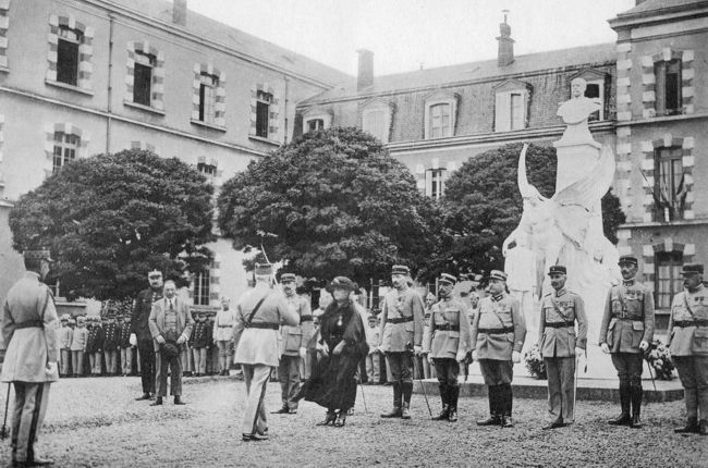 Orphelinat Hériot. Le maréchal Pétain remet les insignes de la Légion d'Honneur à sa directrice, Mme Douine, veuve du Commandant Hériot (5 juin 1921)