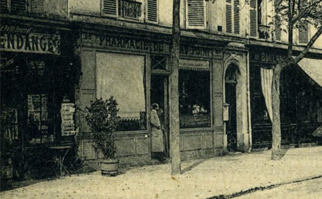 Pharmacie du Rond-Point, 90 rte de Montesson tenue alors par M. Léon Fresco, pharmacien (Collection shv). Les obsèques de Me Gastambide furent célébrées le lundi 21 juillet, au temple du Saint-Esprit du 5 rue Roquépine à Paris (8e), l'avis tenant lieu de faire-part précisant « ni fleurs ni couronnes ». L'inhumation se fit au cimetière du Père Lachaise, dans le caveau familial déjà évoqué. Troisième génération : Maurice Gastambide (1876-1914)