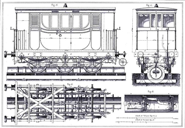 Chemin de fer atmosphérique de Saint-Germain, wagon directeur. Armengaud Aîné. Chemins de fer atmosphériques. Publication industrielle des machines, outils et appareils les plus perfectionnés et les plus récents employés dans les différentes branches de l’industrie française et étrangère, 1848. Planche 10. © Société d’Encouragement pour l’Industrie nationale, Paris. A midi environ, le ministre, après avoir adressé ses félicitations à M. Emile Péreire, directeur du chemin de fer, et à M. Eugène Flachat, ingénieur en chef, est reparti pour Paris avec la plupart des personnes invitées, laissant à Saint Germain les membres de la commission qui voulaient commencer sans tarder leurs observations. Au retour, qui s'est effectué jusqu'à la gare du Vésinet par le seul effet de la pente, le ministre a encore voulu s'assurer de la puissance des freins ; en conséquence, il a fait arrêter le convoi, lancé à sa vitesse ordinaire, au milieu du plan incliné, ce qui eut lieu sans secousse. On est reparti ensuite et le convoi, repris au Vésinet par une locomotive, ne s'est plus arrêté qu'à Chatou et à Nanterre où étaient établies des machines fixes. Ces gigantesques appareils sont parfaitement construits et font honneur aux ateliers d'où elles sortent, ceux de MM. Alfred Hallette et Cie d'Arras, pour les machines de Saint Germain, de MM. Meyer et Cie de Mulhouse pour les deux de Nanterre et l'établissement de Seraing en Belgique, pour les deux de Chatou. Ces dernières surtout sont, au dire des ingénieurs, d'une exécution très remarquable [8]. L'ouverture au public avait été annoncée pour le 1er avril 1847 mais le chemin de fer atmosphérique de Saint-Germain ne put être « livré » à cette date par suite du retard apporté par l'administration des ponts et chaussées. L'autorisation à cette ouverture était conditionné par la poursuite du service vers la gare du Pecq [l'embarquadère de 1837], concurremment avec le nouveau service organisé à la station du Vésinet et à la gare de la place du Château, à Saint-Germain. Cette prescription jugée « complètement inexécutable dans la pratique » par la compagnie d'exploitation motiva de sa part des observations soumises à l'appréciation du ministre des travaux publics. On dut patienter pour l'ouverture du chemin atmosphérique jusqu'au rendu de l'arbitrage du ministre. [9] Pour une étude très complète sur le système du chemin de fer atmosphérique, lire l'article de Paul Smith (en deux parties) en ligne avec une bibliographie très complète. Paul Smith, « Les chemins de fer atmosphériques ». Première partie et deuxième partie, In Situ [En ligne], 10, 2009.