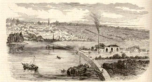 Les « pompes à feu » au bord de la Seine, au bout de l'allée des Machines.