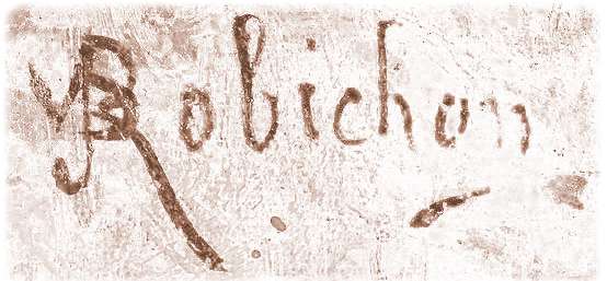 Signature de Robichon dont les toiles sont toujours cotées. On peut noter que les premières oeuvres sont signées seulement "Robichon" et que les initiales des prénoms VPJ n'apparaissent que vers 1880.