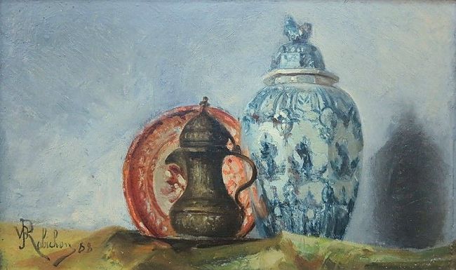 Jules Robichon, Nature morte à la porcelaine chinoise [14,5 x 23 cm] 1888.