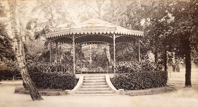 Le kiosque à musique du Vésinet (~1900) On peut évaluer à 1000 ou 1200, le nombre des personnes venues pour assister à cette inauguration, ce chiffre éloquent témoigne de la sympathie que la population du Vésinet porte à la musique et prouve qu'une bonne société musicale qui donnerait souvent des concerts serait très suivie. (Avis aux jeunes gens de bonne volonté). Ils ont en la personne de M. Alphonse Ganne, un chef intelligent et énergique.[4] Au dessert, M. Ledru, vice-président d'honneur de « la Concorde » a porté un toast à M. le commandant Hériot, regrettant que son absence du Vésinet l'ait empêché d'assister à cette fête d'inauguration. M. Ledru l'a remercié, au nom de tous, des bienfaits qu'il a prodigués aux deux fanfares. A ces paroles, un tonnerre d applaudissements est parti avec un enthousiasme et un ensemble qui n'ont rien de surprenant, en raison de la popularité que M. Hériot a su se créer au Vésinet aussi bien qu'à Epernon. Puis M. Ledru a porté également un toast à M. Maillet, maire d'Epernon et président de « la Sparnonienne » qui s'est fait excuser de n'avoir pu accompagner sa société, puis à M. Chonet, l'habile directeur de « la Sparnonienne », à M. Cappe, vice-président de « la Concorde » pour le dévouement infatigable qu'il met à son service, enfin, aux membres exécutants des deux fanfares qu'il prenait plaisir à voir fraterniser avec tant d'enthousiasme et qui ont le plus contribué au succès de la journée par leur entrain et leur bonne tenue.