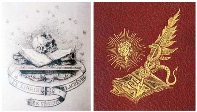 Les goûts singuliers des uns et des autres comme les caprices du temps et la folie de certains hommes jouent sur l'évolution de ce monde curieux. La Révolution française, la Commune, l'incendie de la Bibliothèque du Louvre portent un coup fatal aux richesses nationales. Il était important de revenir sur ces faits marquants pour comprendre la progression de l'histoire et pour repérer cette lente prise de conscience d'un patrimoine fragile. Pénétrer la communauté bibliophilique nous emmènera aussi loin que vers les divagations des bibliomanes. Comment se manifeste cette prédilection du livre chez notre auteur ? Par une incroyable bibliothèque et par le désir d'embellir les ouvrages qu'on lui dédicace. Cet ancien banquier ne boude ni les belles matières ni les fioritures. Ses propres publications connaissent le luxe des maroquins repoussés et des tranches dorées. Les reliures sont confiées aux mains habiles de Lucie Weil, Blanchetière, Bretaut sa femme, Madeleine Lachèvre, incise et colore les cuirs. Les choix des compositions, très personnelles, surprennent par l'agencement du matériau. Un super-libris apposé sur le plat supérieur et un ex-libris collé sur le contre-plat marquent définitivement les ouvrages : il devient dès lors difficile d'ignorer le distingué possesseur du serpent enserrant une plume et de la tête de mort! [4]