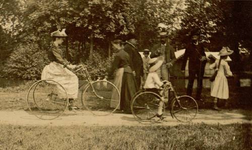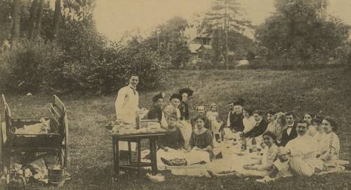 Un dimanche autour du lac des courses Promenade en tricycle (1890) © Archives départementales « Nulle part plus qu'au Vésinet les dames ne pratiquent avec ferveur la vélocipédie... » (Le Monde illustré, 1894) ... . Un dimanche autour du lac des courses Un pique-nique en famille près du Lac. © Collection particulière. N'avons-nous pas tous admiré, en effet, ses larges et verdoyantes pelouses, ses magnifiques lacs, agrémentés d'îles et d'îlots charmants, bordés de gazons soyeux, de bosquets épais et variés, ses interminables rivières, ses poétiques ruisseaux, ombragés et limpides, qui la serpentent dans tous les sens, ses chutes d'eau, ses ravissantes cascades, du plus merveilleux effet, ses gués rustiques, ses points de vue, ses échappées à travers les futaies et les pelouses, ses bois profonds enfin, où la nature souriante et vivace se marie le plus harmonieusement du monde au génie de l'homme dans ce qu'il a pu produire de plus parfait, de plus fini, comme goût et comme art.