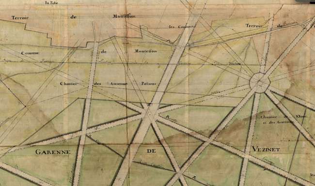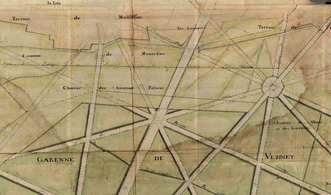Dodieu [4]. Plan de la Garenne de Vésinet, bornée par arrêté du Conseil du 6 février 1753 [détail (agrandir)] Aupec, dit le livre de l'élection, possédait à