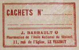 banlieue résidentielle à dix-sept kilomètres de Notre-Dame de Paris. En réalité, il aimait la politique [2]. Socialiste, il fut l'un des premiers léninistes, par idéalisme. Au fond de lui-même, il se sentait poète, aussi s'évanouissait-il à la vue du sang quand, dans sa pharmacie, on lui ramenait un blessé. Il avait trente-quatre ans, il n'avait plus que huit ans à vivre - mais ça, il ne le savait pas [3]... [1] Il s'agit là d'une confusion fréquente. L'Asile en question n'est pas un "Asile d'aliénés" mais l'Asile national du Vésinet. Jules Barrault devait y trouver un certain prestige puisqu'il faisait figurer la mention "Pharmacien de l'Asile national du Vésinet" sur les étiquettes de ses flacons. D'autre part, on trouve dans la presse paramédicale de l'époque une "réclame" qui nous apprend qu'une "pommade Barrault, préparée par J. Barrault, pharmacien en chef de l'Asile National du Vésinet, est aussi toute indiquée pour la guérison prompte et radicale des eczémas, sans aucun danger de voir le germe de cette maladie se reporter sur un autre organe" (Almanach Normand-Percheron, 1907). [2] Jules Barrault fut conseiller municipal et premier adjoint aux côtés de Gaston Rouvier. Elu conseiller municipal le 10 mai 1908, sur la liste radicale de Gaston Rouvier, il est élu premier adjoint le 26 juillet 1909. La liste sera réélue en 1912 et Jules Barrault sera reconduit dans sa fonction mais quittera le Vésinet peu après. [3] Jules Barrault, est mobilisé en Août 1914. Pharmacien auxiliaire à la section d'infirmiers du 3e Corps, il est mort de la grippe, au Centre de réforme des Tourelles, à Paris, le 16 octobre 1918. A ses obsèques au cimetière du Père Lachaise, Gaston Rouvier prononça son éloge funèbre.