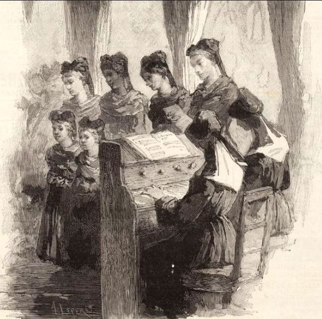 Le Monde illustré, 10 juillet 1880 (extrait) [1] L'Alsace-Lorraine au Vésinet [2] Le souvenir de l'Alsace-Lorraine semble s'effacer au milieu de toutes nos dissensions et de nos préoccupations politiques nous sommes donc heureux de montrer à nos lecteurs que nos vieilles provinces ont encore des amis fidèles, et les enfants de nos chers compatriotes des protecteurs dévoués. On se souvient que, en 1871, après nos désastres, M. le comte d'Haussonville, sénateur, fondait la Société de protection des Alsaciens et Lorrains demeurés Français. Cette société eut pour but de favoriser l'émigration des optants et eut pour résultat la création de villages prospères en Algérie. Il fallait bien songer aussi aux orphelines abandonnées de ce malheureux pays ce fut l'œuvre de M. Edouard de Naurois [3] qui acheta, en 1875, au Vésinet, un terrain de 8 000 mètres, y fit construire un établissement où trente-sept jeunes filles reçoivent les soins et l'instruction des sœurs de Saint-Charles, ordre Alsacien, qui seront probablement expulsées comme les autres congrégations. [4] La distribution des récompenses se