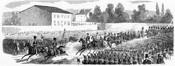 On trouvera plus loin une notice des opérations empruntée au Constitutionnel. Nous regrettons que le Moniteur, et les journaux qui se bornent ordinairement à reproduire ses récits, aient gardé, en cette circonstance, une réserve que nos propres informations sont incapables de suppléer. Ce que nous avons surtout remarqué, c'est le nombre prodigieux de Parisiens accourus au bruit de la canonnade et de la mousqueterie; c'est l'habileté du commandement sur un terrain où il était difficile de se développer, afin de ménager, les récoltes encore sur pied dans le voisinage; c'est la précision des manoeuvres, obligées pourtant de se conduire de manière à ne pas culbuter des curieux pressés jusque dans les lignes de la troupe; c'est, en un mot, l'entrain de cette multitude qui se croyait aux jours glorieux d'Austerlitz, d'léna et de Friedland. Nous avons vu des femmes — des faibles femmes, comme on disait autrefois, — braver le bruit du canon. Plusieurs, à ce qu'on assure, en sont revenues les oreilles saignantes, et quelques-unes resteront sourdes. Il n'y a pas de bataille sans blessures, et pas de ville prise sans quelque destruction. Les vitres du Pecq et de Chatou rendent témoignage de cette dernière nécessité.[...]