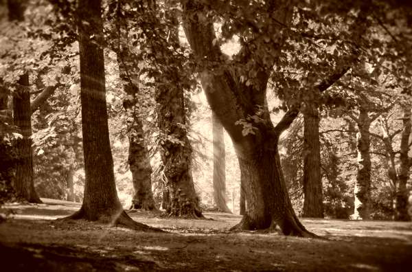 ...sous les chênes géants de la forêt du Vésinet, appelée alors la forêt d'Echauffour... « Mettez-moi là rafraîchir nos bouteilles, dit la bonne dame, étendons une nappe sur cette mousse, et nous dînerons comme des rois. Et qu'est-ce que cela fera au traître Ganelon, à Roland et aux autres ? je vous le demande. » On était si bien là, qu'on y eût volontiers attendu le coucher du soleil mais, Simon Vouët ayant rappelé à ses élèves qu'il devait leur faire visiter le château de Saint-Germain et que la nuit venait de bonne heure en cette saison, les convives remontèrent en voiture. Madame Vouët distribua les reliefs du festin à de pauvres bûcherons qui travaillaient à peu de distance elle regarda soigneusement si on n'avait rien oublié sur l'herbe, et prit place à côté de son mari. Le cocher, qui avait dîné comme quatre, assura que ses chevaux feraient dix lieues si on voulait, tant ils avaient mangé d'avoine et, comme pour lui faire plaisir, ces honnêtes chevaux traversèrent au galop le pont du Pecq et montèrent lestement la côte de Saint-Germain. [1] Lavergne Julie, La fête de Simon Vouët, in Légendes de Trianon, Versailles et Saint-Germain (4e éd.) chez V. Palmé (Paris), 1891 [2] Figurines chinoises très en vogue à la cour de Louis XIV. L'allusion est anachronique. [3] Eustache Le Sueur (1616-1655) élève de Simon Vouët Charles LeBrun (1619-1690), peintre, partageait le même atelier que Simon Vouët. Louis Testelin (1615-1655), fils d'un musicien de la cour, étudiait la peinture auprès de Vouët. [4] Liberté créatrice de la romancière ou vérité historique ? Un cours d'eau a peut-être existé aux temps géologiques dans les replis argilo-calciques qui sillonnent le nord du Vésinet. Son lit est décelable sous la fine couche d'humus. Une source existait-elle encore au XVIIe siècle ? Elle subsiste aujourd'hui sous forme souterraine. [5] Représentation romantique de la forêt imaginaire d'autrefois: Source cristalline, chênes géants, biche et faon à l'allure incertaine et légère .., autour de la (légendaire) Table de la Trahison.