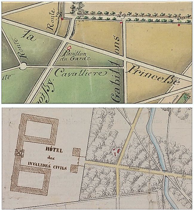 Propriétés de la Couronne bâties dans la forêt du Vésinet (1824) La Maison du Garde (3) Le Pavillon Nord (6) Le Pavillon Sud (7).