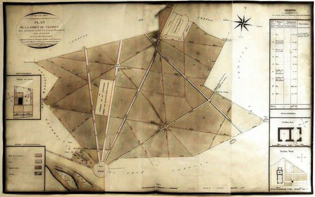Archives Nationales N/IV/Seine/89 [1] Plan de la forêt du Vézinet (1824) par le chevalier Victor de Moléon Ce plan est le dernier connu avant que la transformation de la forêt du Vésinet [2] commence (onze ans avant le percement de la voie de chemin de fer ; trente-cinq ans avant le début du lotissement du Vésinet.