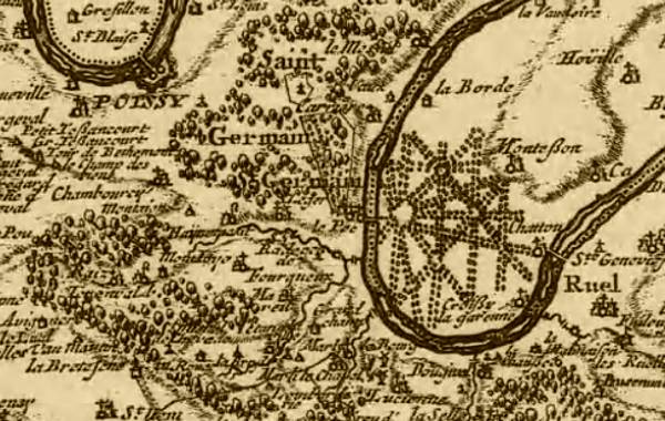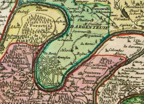 1675 - Plan particulier des environs de Paris, Versailles et Saint-Germain en Laye (détail centré sur le village de Chatou)