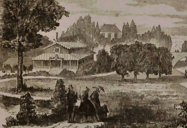 Pour la première veillée de Noël à l'église, en 1865, les restaurants du village restent exceptionnellement ouverts la nuit pour accueillir la sortie de la messe de minuit. *** Notes et autres sources : [1] Archives Moisson: Cahier des charges de la 19ème adjudication, le 26 septembre 1861. [2] L'Industriel de Saint Germain, 2 mai 1863. [3] Le Furet du Vésinet et l'Industriel de St Germain proposent dès 1862 des itinéraires pédestres pour visiter les lieux les plus pittoresques du Parc. [4] Ce premier kiosque sera plusieurs fois déplacé. Installé en 1861 sur la Pelouse des Concerts, avenue Centrale autour du lot 77, îlot 5, non encore vendu (M. Nilles, 1989). Il ira en 1864 se dresser près du Lac Supérieur, dans le triangle formé par les actuelles allée des bocages, rue des réservoirs, boulevard des Etats Unis. Puis, en 1866, il fut déplacé dans l'Ile du Grand Lac. [5] La Toupie hollandaise dite aussi Jeu du Roi, Quille des Indes ou encore Dame Blanche. Le joueur lance une toupie, qui doit renverser des petites quilles représentatives de la hiérarchie sociale (soldats, chevaliers, roi). [6] L'Industriel de Saint Germain, 22 décembre 1866. [7] Désigné dans certaines publications Jardin-Turc. C'est peut-être une confusion avec un établissement du Boulevard du Temple à Paris, fréquemment cité dans la presse.