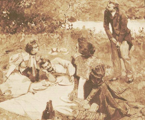Comme le Vésinet est devenu un « haut lieu de promenade » [3], des paniers de pique-nique, avec les ustensiles indispensables, sont à la disposition de la clientèle. On peut retirer les repas au panier chez Prat, composés de « pâté, poulet rôti, jambon glacé, dessert, pain et d'une bouteille de vin, avec service de table » afin de s'offrir un pique-nique sur l'herbe.