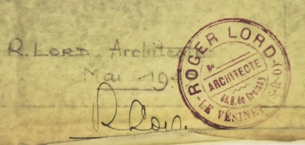 ùJean-Paul Debeaupuis, shv, 2023 Roger Lord (1894-1974) architecte au Vésinet Roger Édouard Stothard Lord est né à Bruxelles le 7 mars 1894. Son père Ernest Edward Lord, et sa mère Léontine Sainte Beuve sont alors domiciliés à Londres. Il semble que ce soit fortuitement, à l'occasion d'un voyage, que la naissance ait eu lieu en Belgique. Roger est le troisième enfant du couple. Deux filles sont nées en 1882 et 1884. Son père, Ernest Lord, sujet britannique, est jockey et entraîneur. [1, 2] A montré à maintes reprises comme fourrier puis comme sergent-major de belles qualités d'initiative et de courage. A assuré notamment le ravitaillement de son unité pendant les périodes de combat d'octobre et novembre 1918 dans des circonstances les plus difficiles. Le 1er juillet 1919, il est placé « en sursis d'appel » et mis à la disposition de la Maison Boissel, 14 rue Béranger à Compiègne par décision spéciale du général commandant la 6e région militaire (n°3911bis). Anselme Boissel (1891-1951) jeune architecte de Compiègne devenu aviateur militaire, fut gravement blessé en septembre 1917. Resté mutilé à vie, pensionné à cent pour cent, il poursuivra ensuite ses réalisations architecturales (nombreux édifices, principalement des villas au Touquet-Paris-Plage dont certaines sont répertoriées à l'inventaire général du patrimoine national). [4] Roger Lord reste domicilié professionnellement à la Maison Boissel, au 14 rue Beranger jusqu'en 1920. A son mariage, le 10 décembre 1919, il se déclare architecte, profession qu'il exercera à Compiègne jusqu'en 1925. C'est à Compiègne que naîtront ses trois enfants : Ginette (1920), André (1922) et Madeleine (1923).