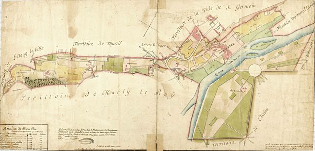 Le patronyme Raffron sur un manuscrit de 1539 (x6). Une famille du Pecq, les Rafferon (nom orthographié aussi Raffron ou Rafron), va acquérir une place importante au cours du XVIe siècle dans toute la contrée. Les Rafferon y sont nombreux. On en trouve aussi bien à Saint-Germain qu'à Poissy et à Argenteuil. Au port du Pecq, le quai appelé Quai des Rafferon en a conservé la mémoire jusqu'au XXe siècle. Le premier représentant de cette famille à avoir acquis de la notoriété est Marin Rafferon. Il est laboureur et vigneron. On trouve sa trace dans plusieurs documents de la fin du XVe siècle, en particulier celui (4 mars 1479) par lequel l'Abbé de Saint-Wandrille, par l'intermédiaire de ses procureurs, Simon Foucault (prêtre) et noble René Maydon (doyen de Langres), accordent à Marin Rafferon un bail dont des détails seront développés plus loin. [4] A travers les multiples documents fiscaux et notariés qui, à partir du règne de François Ier, deviennent de plus en plus règlementés, nous avons trouvé çà et là des détails qui éclairent et concrétisent l'apparition et le développement du domaine qui deviendra au XVIIe siècle, par la volonté du maréchal de Noailles, la Ferme du Vésinet. ... toutes les masures, place de colombier, terres et prés, dont la partie desdites terres et prés sont la plupart en ruyne et buyssons et généralement tout le lieu de Vésinel, près du port dudit lieu du Pec, et tout ledit lieu entretenant, tenant d'un costé à la rivière Seyne, d'autre costé et aboutissant d'un bout au seigneur de la Borde et par le bout d'embas au seigneur de Crocy. [8] Le bail sera plusieurs fois renouvelé ou ajusté, en 1486, 1495 et 1500. Marin Rafferon obtiendra finalement un bail perpétuel et transmissible. [8,9] ... Et sy avons outre Seyne, du costé devers Paris, ung autre manoir dict Voysinel, où il y a plusieurs terres labourables, prés... ... Lequel lieu de Vesynel et terre d'icelluy [...] se consister en ung petit manoir, de maisons et petites estables couvertes de chaume... La présence de ce manoir a semblé attester le caractère noble du lieu et par extension, de ses occupants, les Rafferon. Mais on trouve dans les clauses fixées par les bailleurs au tenancier (preneur) la raison d'être et la fonction de ce « petit manoir » : «... obligation pour les preneurs d’héberger le proviseur et le procureur [de l'Abbaye], quand ils viendront au Pecq ... » A la fin du XIXe siècle, au début du XXe et tout récemment encore, des ouvrages fort pratiques ont été produits pour réunir sous forme imprimée, avec ou sans index, les textes manuscrits conservés aux Archives nationales, dans les communes ou les études notariales. Ces ouvrages sont beaucoup plus accessibles que les manuscrits mais ils présentent aussi un inconvénient majeur. Les noms propres sont parfois mal déchiffrés. Et aux formes multiples dues aux rédacteurs et aux copistes, s'ajoutent les erreurs de déchiffrement. Un exemple parmi d'autres. ... donation à Jehan Raffron, prêtre, curé du Pecq, maître ès arts en l'Université de Paris, son fils, de tous les biens qu'elle possède au terroir du Pecq, en la terre et seigneurie de Vestueil, assise près la porte dudict lieu du Pec, la saulseye du port aux chevaulx ... Dans ce texte lu par un transcripteur systématique, le mot « Vestueil » lui semble le plus probable et se retrouvera dans l'index alors qu'un lecteur informé et soucieux du sujet n'hésitera pas à y reconnaitre notre Vésinet. Cet exemple est tiré d'un gros ouvrage de plusieurs volumes : Inventaire des registres des insinuations du Châtelet de Paris, pour les règnes de François Ier et de Henri II publié en 1906 par E. Campardon et A. Tuetey. Il a connu dans la période récente un regain de popularité auprès des généalogistes. D'autres ouvrages (Minutier central des notaires de Paris. [...] Inventaire analytique par C. Béchu, F. Greffe et I. Pébay. Paris, 1993) présentent le même intérêt ... et les mêmes défauts pour le même usage. On y trouve cependant, pour la période allant de la signature du premier bail (1479) à la vente de 1569, d'autres actes notariés permettant d'apprécier l'évolution de la situation de la famille Rafferon et de la terre du Vesynel. Marin Rafferon est décrit comme homme droit et énergique ayant l'amour de la terre et ambitieux pour ses fils. ... tous les droits [...] à charge par les preneurs d’entretenir le dit bac de nasselles, cordages et autres choses qu’il conviendra avoir pour le dit port, icelluy bac aussi entretenir de toutes réparations, grosses et menues ; d'exercer ou faire exercer, aussi bien et deuement, la justice que le dit collège a au dit lieu, sans en icelle justice faire aucun abbuz, attemptatz, dol ou fraulde. Pareillement à la charge de faire par ledit preneur, de trois ans en trois ans, pappiers nouveaulx du droict que le dit collége a audit lieu, tant des cens, rentes que de toutes autres choses et droictz, et en la fin du dit temps leur en rendre ung, signé du greffier ou tabellion du dit lieu ». Ce bail est obtenu non de l'Abbaye bénédictine de Fontenelle qui a les droits sur la seigneurie d'Aupec et sa dépendance du Vésinet mais du collège Saint-Bernard, de l'ordre de Citeaux, qui possède les droits sur la « rivière de Seyne » inclus dans l'antique fief des Bernardins. En 1355, les Bernardins avaient acheté ce petit fief qui dépendait du seigneur de Montmorency. Situé dans la partie basse d'Aupec, au bord de la Seine, il comprenait alors une maison et 17 arpents de terre, constitués de parcelles réparties en divers lieux voisins. Mais son intérêt principal résidait dans les revenus que procurait un droit de péage, perçu pour emprunter un bac qui permettait de traverser la Seine à cet endroit. Les Bernardins en donnèrent la concession à un habitant du voisinage, qui avait la charge de l'entretenir et de percevoir les péages. Par 