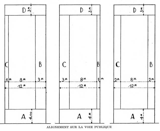 Figure 1: Trois exemples d’application des zones non aedificandi des terrains de 3° catégorie. A: Zones non aedificandi en façade sur rue.