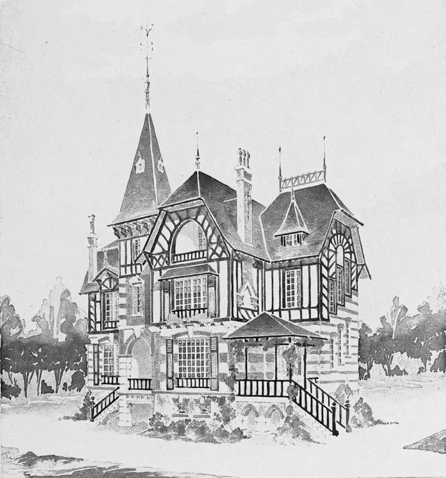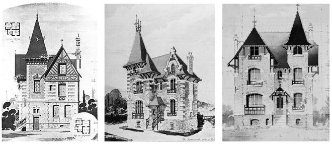 Autres villas de Théophile Bourgeois au Vésinet présentées dans les trois volumes de La Villa Moderne. Vol.1 pl 10 : Villa pour le Vésinet – Vol. 2 pl. 30 : Villa – Vol.3 pl. 14 : Villa au Vésinet.