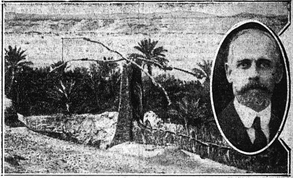 Un khottara (puits à bascule) dans l'Oasis de Timmoudi -En médaillon, le colonel Clavery.