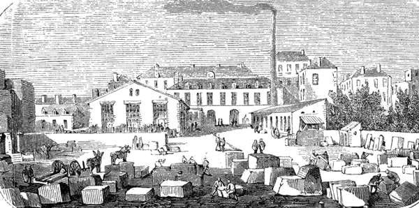 D'après Emile Bourdelin Les marbres onyx d'Algérie. — Le Monde illustré, n°243, 7 décembre 1861. L'usine de M. Pallu, rue Popincourt, à Paris Les carrières d'onyx d'Algérie sont situées dans la province d'Oran, aux environs de Tlemcen, cette vedette aujourd'hui française, placée au point culminant du bassin de la Tafna, à proximité des frontières du Maroc. Ces mines furent exploitées par les Romains, au temps de leur domination, et peut-être aussi par les Berbères, à l'époque où Tlemcen était florissante. Cette ville était alors la capitale d'un royaume qui comptait cent cinquante lieues de littoral. Les traditions arabes disent merveilles de ses palais, de ses mosquées et de ses bazars, qu'alimentaient d'innombrables caravanes. L'usage de la matière qui nous occupe actuellement ne peut manquer de prendre un immense développement sous la direction des intelligents industriels qui ont organisé son importante exploitation. L'usine de fabrication a été installée à Paris. On ne pouvait mieux choisir le centre de l'immense rayonnement qui est destinée à embrasser cette multiple production. Usine Pallu (1861) - Façade du magazin, 29 rue Popincourt (XIe arr.)
