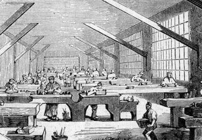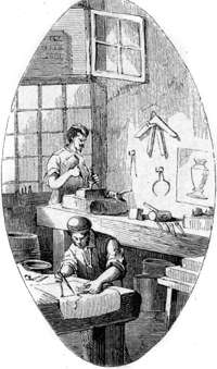 Usine Pallu (1861) — Le magazin Au rez-de-chaussée sont rangés les objets de grandes dimensions *** Notes: [1] Jusqu'en 1860, la rue Popincourt était dans le 8e arrondissement (Paris, jusqu’alors délimité par l’enceinte des fermiers généraux, en comptait 12) dans le quartier Popincourt. A partir du 1er janvier 1860, Paris s’agrandit en annexant en totalité ou partie ses communes limitrophes son espace est redécoupé en 20 arrondissements du Paris actuel. [2] Dès 1863, le magazin d'exposition sera transféré au 24, boulevard des Italiens, dans un lieu décrit comme « un palais enchanté où l'or, l'émail et l'onyx se marient avec tant de bon goût et de science qu'on ne sait laquelle de ces trois matières fait le mieux ressortir les autres. » Le Monde Illustré, n°349, 19 décembre 1863.