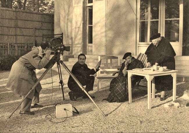 Décembre 1949 : Tournage du film La Vie dramatique d'Utrillo. Maurice Utrillo, dans son jardin, joue son propre rôle, vieil homme prenant le thé sur sa terrasse. Pierre Gaspard-Huit (accroupi) et son chef opérateur André Villard face à Maurice Utrillo et Lucie Valore dans le jardin de La Bonne Lucie. Maurice Utrillo lui-même a collaboré à la réalisation du film. (Photo de Maurice Zalewski/Picture Post/Hulton Archive/Getty Images). Si Maurice Utrillo exprima sa satisfaction et son admiration à Jean Vinci, son épouse ne l'entendait pas de la même oreille. A sa demande insistante, elle et son mari demandèrent la mise sous séquestre du film parce qu'ils le considéraient de nature à « porter une grave atteinte à la dignité et à la réputation » de l'artiste. Ils reprochaient, en particulier, quatre scènes : Utrillo ivre, à Montmartre, alors qu'il n'avait que dix ans, puis dans un cabanon avec la camisole de force ; ensuite buvant de l'absinthe, et enfin ramassé dans un ruisseau par un agent. [6] [...] Au programme, un assez long métrage (43 mn) de Pierre Gaspard-Huit sur « La vie dramatique de Maurice Utrillo ». Film d’un grand intérêt qui n’est ni un film d'art, ni une biographie romancée. La jeunesse tourmentée, la vie brisée fréquemment par l’alcoolisme et les crises de delirium tremens, les séjours à l’asile d’aliénés et la conversion finale sont les moments les plus marquants du film, entrecoupés des accès de fièvre créatrice qui ont révélé le génie du peintre Utrillo. Jean Vinci, pour ses grands débuts à l’écran, réussit là une création remarquable, pleine de vie et de sincérité pour laquelle Utrillo avait tenu à le féliciter. Renée Cosima a, de son côté, ressuscité la silhouette émouvante de la mère du peintre, Suzanne Valadon. A propos de la sortie du film, nous signalons que le différend qui opposait à Pierre Gaspard-Huit et à son auteur, Roland Dorgelès, Mme Lucie Valore, épouse d’Utrillo, n’est toujours pas résolu : Mme Valore avait exigé certaines coupures portant sur quelques épisodes douloureux de l’ivresse d’Utrillo. Trois de ces coupures n’auraient pas été faites et, malgré l’arbitrage de Pierre Descaves [8] et les assurances données par le metteur en scène, Mme Lucie Valore a maintenu son désaccord. [9] L'arbitrage avait aboutit à l'incorporation d'une note au début du film, disant en particulier que La Vie dramatique de Maurice Utrillo est une « dramatisation dans laquelle la légende peut empiéter sur la vérité avec le grossissement inévitable que les prestiges de l'écran confèrent à la fable. Quelques aspects de certaine et hypothétique misère humaine s'effaceront derrière le thème de rayonnant hommage apporté à un homme dont l'oeuvre magistrale s’épanouit sur un plan déterminé et dont la vie est un perpétuel triomphe de l’intelligence sur les passions. » Tout semblait donc apaisé, lorsque Roland Dorgelès, auteur du scénario et des dialogues (récités par Jean Chevrier), estimant que les termes de cette note constituaient pour lui une sorte de désaveu, exigea de ne plus figurer au générique. Il n'en fut rien. [10] **** Notes et sources : [1] Initialement, cet Utrillo devait être le premier d'une série de treize moyens métrages consacrés à l'œuvre et à la vie des grands peintres contemporains. Étaient alors déjà prévus un Gauguin et un Dufy. [2] Jean Louis Rinaudo Annibaliano alias Jean Vinci (1921-2010) a tourné une soixantaine de longs métrages et tenu un nombre considérable de rôles dans les feuilletons, les séries et les dramatiques TV. [3] Christiane Fournier pour Cinémonde, décembre 1949. [4] Ibid., [5] Ibid., [6] Le Monde, 4 mai 1950. [7] Ce prix attribué à partir de 1947 par le Syndicat des scénaristes récompensait un film documentaire ou de reportage cinématographique de court métrage. Il faut le distinguer du Grand prix Louis Lumière (Grand prix du festival de Cannes avant la Guerre). Un nouveau Prix Lumière a été créé en 2009 à Lyon. [8] M. Pierre Descaves, (1896-1966) écrivain, chroniqueur et producteur de radio, administrateur général de la Comédie-Française de 1953 à 1959 était alors président de la Société des gens de lettres. [9] Ce soir, 24 février 1951. [10] Paris-presse (L’Intransigeant), 17 février 1951