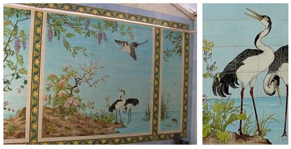 Un échantillon des faïences de Sarreguemines qui ornent toujours les anciennes salles d'hydrothérapie. © Clichés SHV, 2005. En savoir plus: La clinique La Villa des Pages aujourd'hui.
