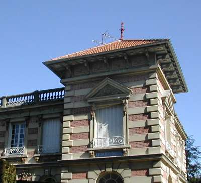 Villa des Pages - Le Pavillon d'hydrothérapie aujourdui désaffecté. On a conservé à l’intérieur, la piscine théâtre des douches froides et écossaises, des bains hydroélectriques sulfureux ou térébenthinisés, avec ses décors de faïences de Sarreguemines, animaux et plantes, d’esprit déjà Art nouveau. ... Ce vaste sanatorium, que l'on croirait plutôt un home familial, comporte une dizaine de pavillons isolés les uns des autres, dans un immense parc de 4 hectares agrémenté des plantations les plus variées et les plus luxuriantes. Là se trouvent réunis tous les progrès de la science la mieux éclairée et la plus parfaitement comprise, s'alliant heureusement à l'art du grand confortable. Là, le malade peut, selon son état ou sa fantaisie, se distraire on se reposer dans le plus grand calme, débarrassé de toute préoccupation, car tout le monde ici pense, agit pour lui et s'ingénie par mille prévenances à lui rendre son séjour agréable. Des religieuses sont attachées à l'établissement et s'occupent avec un soin tout maternel des malades qui le désirent.